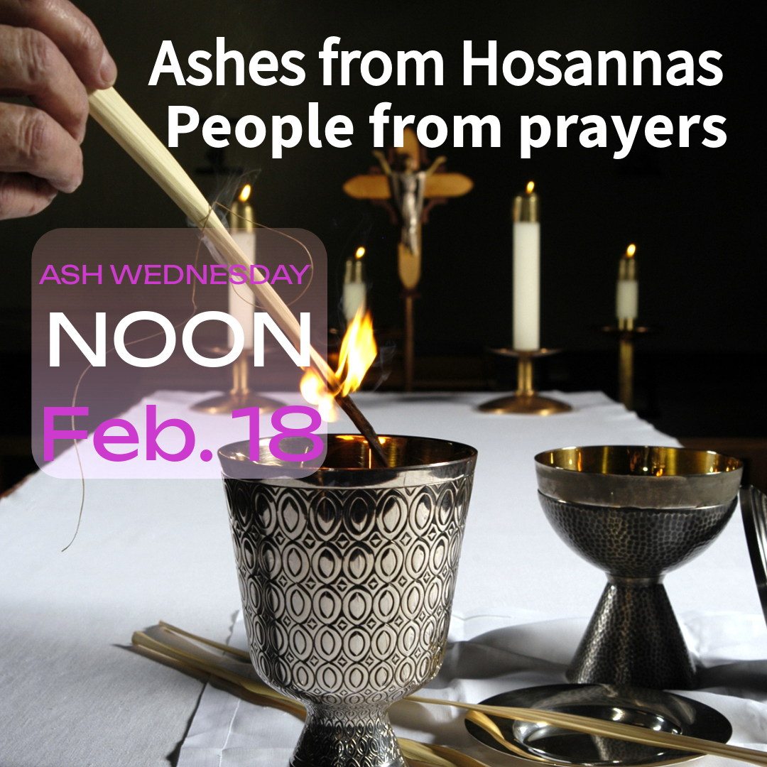 Join us for Ash Wednesday at 12 noon, Feb. 18, 2026